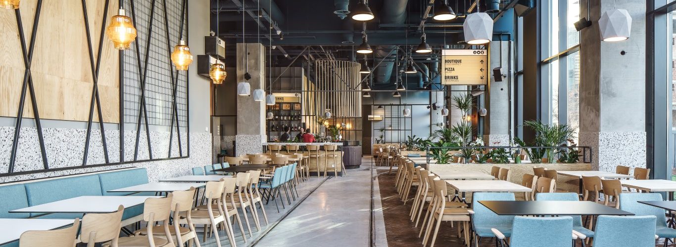 Spatiul este optimizat, cu zone care functioneaza divers in functie de momentul zilei, de la loc de baut cafeaua, la restaurant de 300 de persoane si local à la carte. Cromatica este imprumutata de la culoarea verde a tramvaiului 14, singurul accent din spatiu, care este insa adus la viata prin utilizarea inteligenta a texturilor – beton, terrazzo, placaj/ lemn, metal, piele.