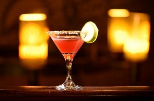 Cosmopolitan Acest cocktail a castigat popularitate inca din perioada anilor ’90, in randul tinerelor doamne si domnisoare. Servit de obicei intr-un pahar de martini, cocktailul este adesea decorat cu o felie de limeta, iar culoarea roz se datoreaza continutului de suc de merisoare.